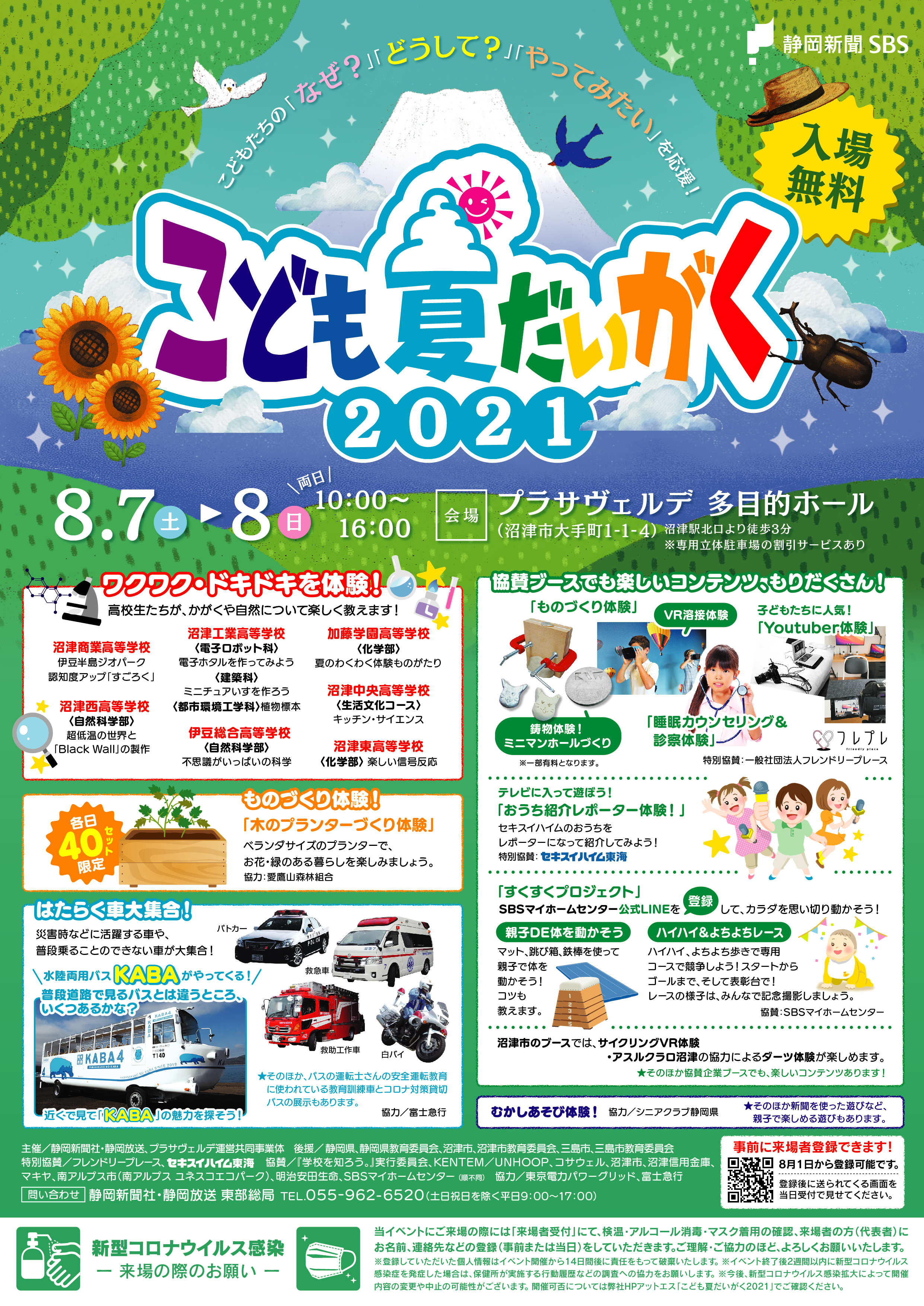このたび、令和3年8月7日(土)~8月8日(日)に静岡新聞SBSが主催する「こども夏だいがく2021」に出展することが決定しましたので、ここにお知らせします。